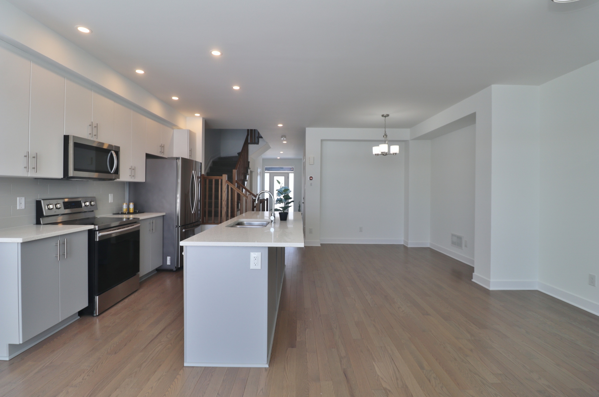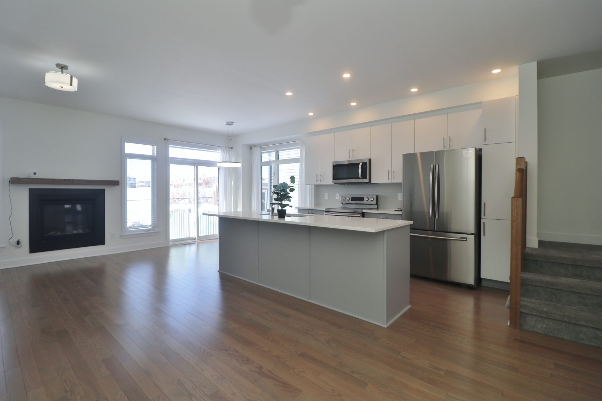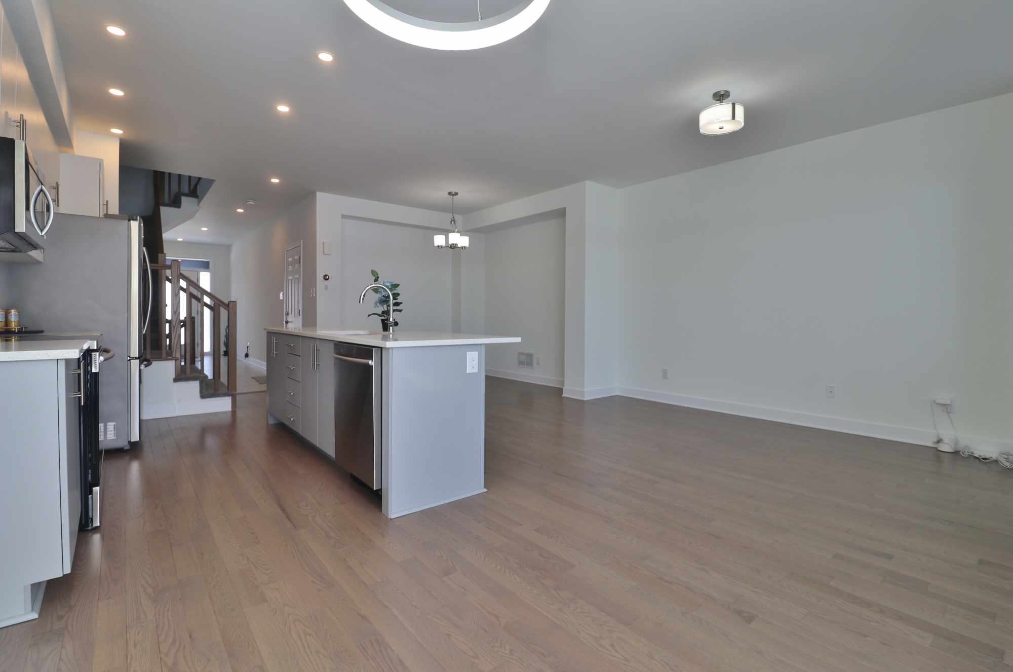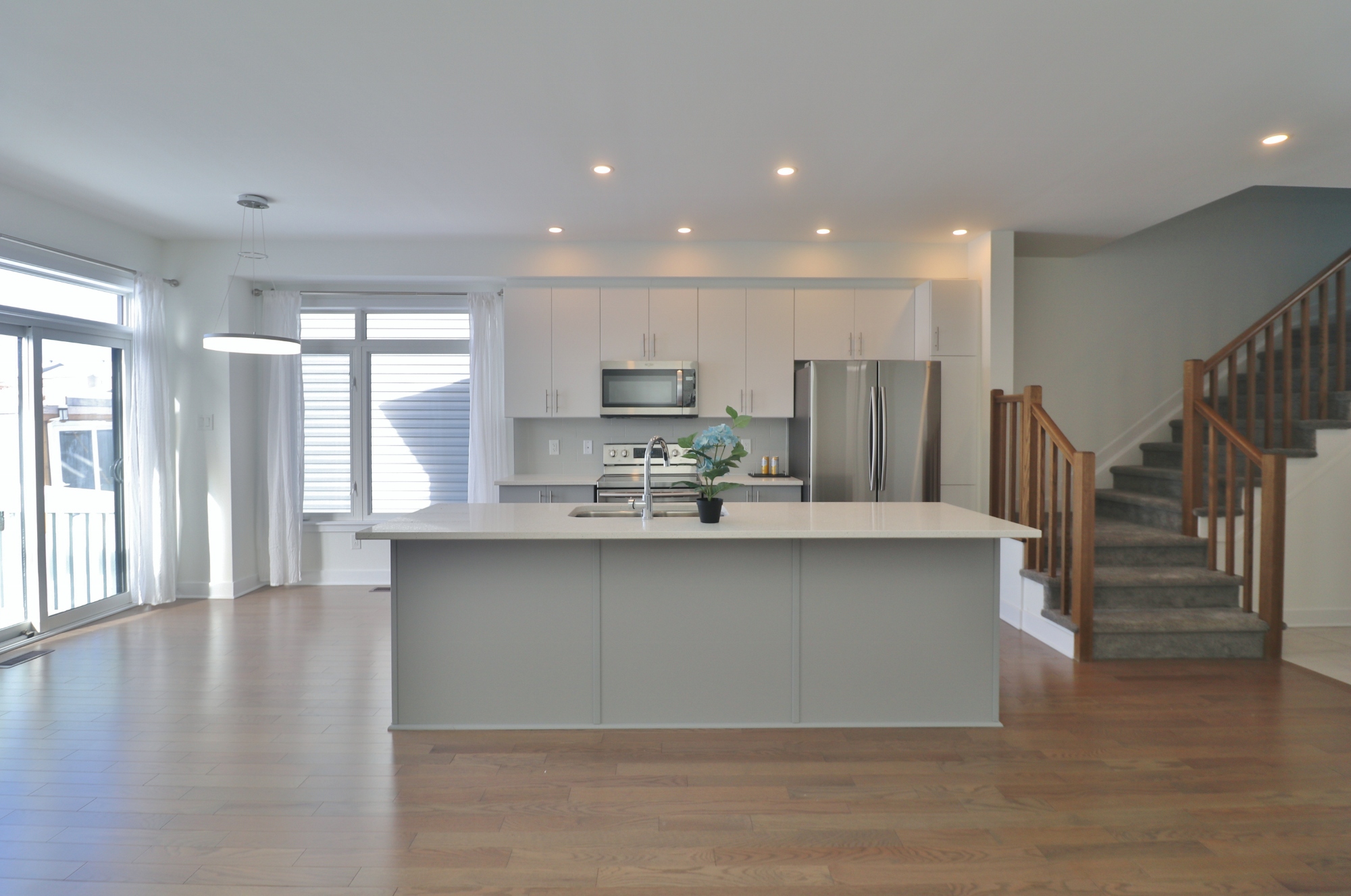 Welcome to this stunning 3 Bed/2.5Bath end-unit modern townhome located in the heart of the highly sought-after Findlay Creek/Leitrim, just steps from parks, schools, and everyday community amenities. Backing directly onto a park with no rear neighbours, this home offers rare privacy and a peaceful setting. The main level features a bright, open-concept layout with 9-foot ceilings, upgraded two-tone kitchen with quartz countertops, and stylish hardwood and tile flooring, perfect for both relaxing and entertaining. Thoughtful upgrades and modern finishes throughout give the home a clean, contemporary feel. Upstairs, you’ll find 3 generously sized bedrooms with large windows, including a spacious primary bedroom complete with a walk-in closet and private ensuite bathroom. The finished basement adds valuable living space with a cozy family room and large window, ideal for a home office, movie nights, or a kids’ play area. Laundry (washer and dryer included) is located on the basement level.