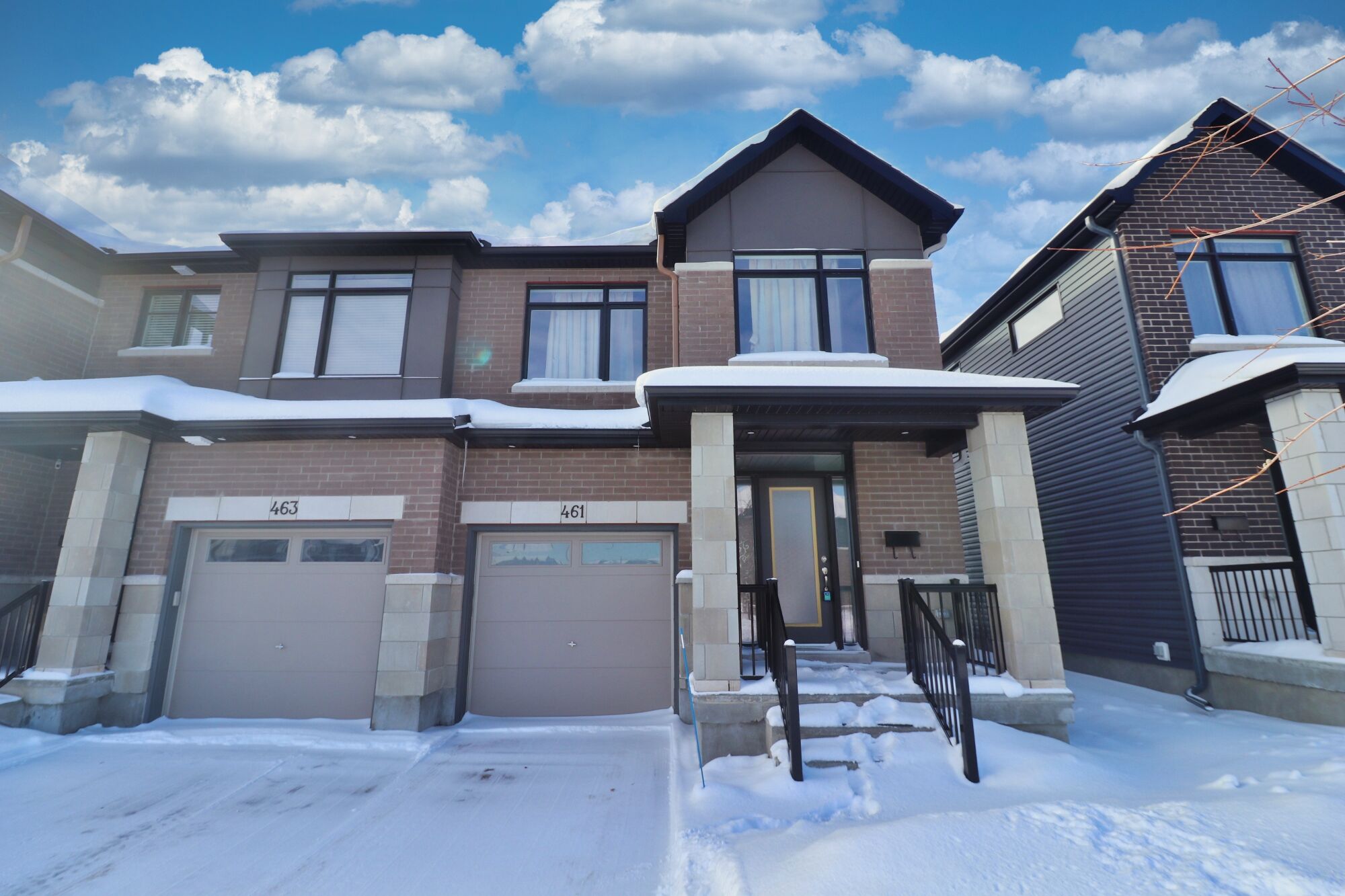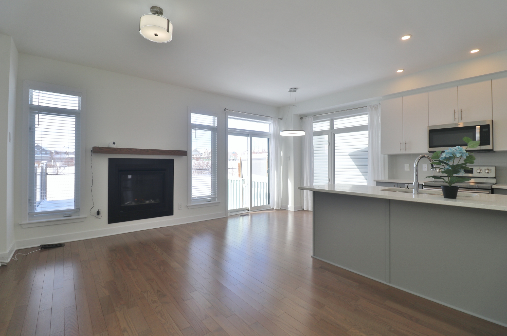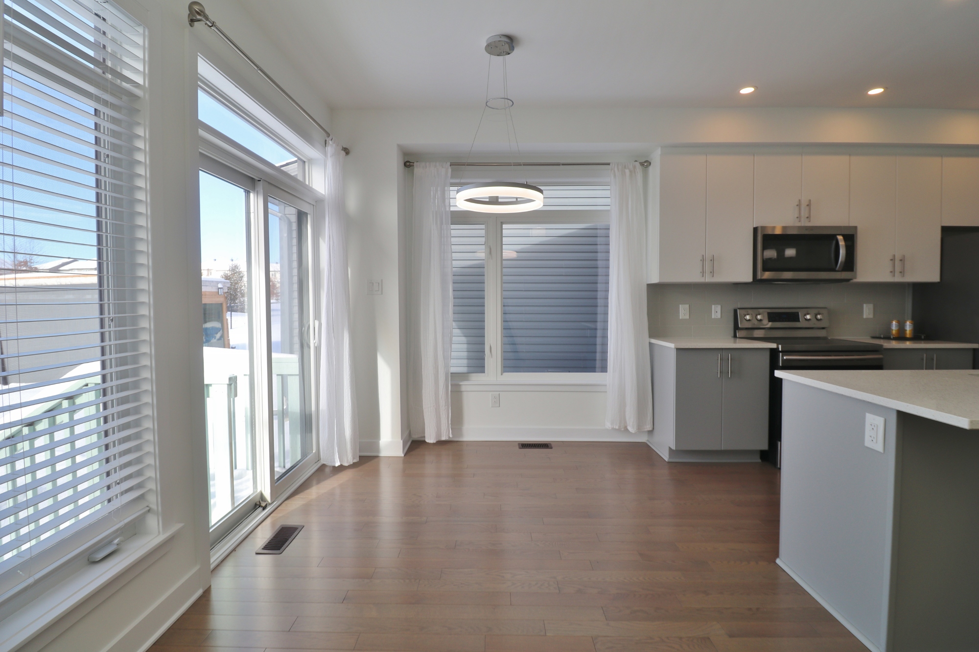 Welcome to this stunning 3 Bed/2.5Bath end-unit modern townhome located in the heart of the highly sought-after Findlay Creek/Leitrim, just steps from parks, schools, and everyday community amenities. Backing directly onto a park with no rear neighbours, this home offers rare privacy and a peaceful setting. The main level features a bright, open-concept layout with 9-foot ceilings, upgraded two-tone kitchen with quartz countertops, and stylish hardwood and tile flooring, perfect for both relaxing and entertaining. Thoughtful upgrades and modern finishes throughout give the home a clean, contemporary feel. Upstairs, you’ll find 3 generously sized bedrooms with large windows, including a spacious primary bedroom complete with a walk-in closet and private ensuite bathroom. The finished basement adds valuable living space with a cozy family room and large window, ideal for a home office, movie nights, or a kids’ play area. Laundry (washer and dryer included) is located on the basement level.