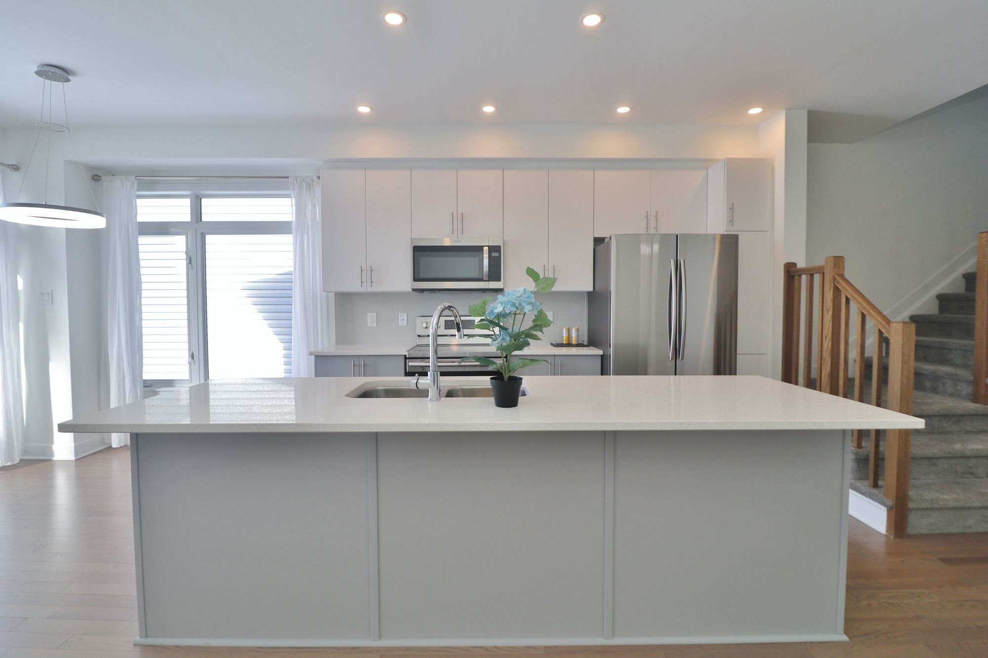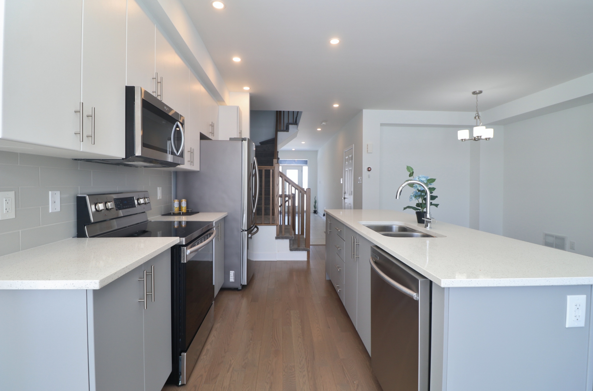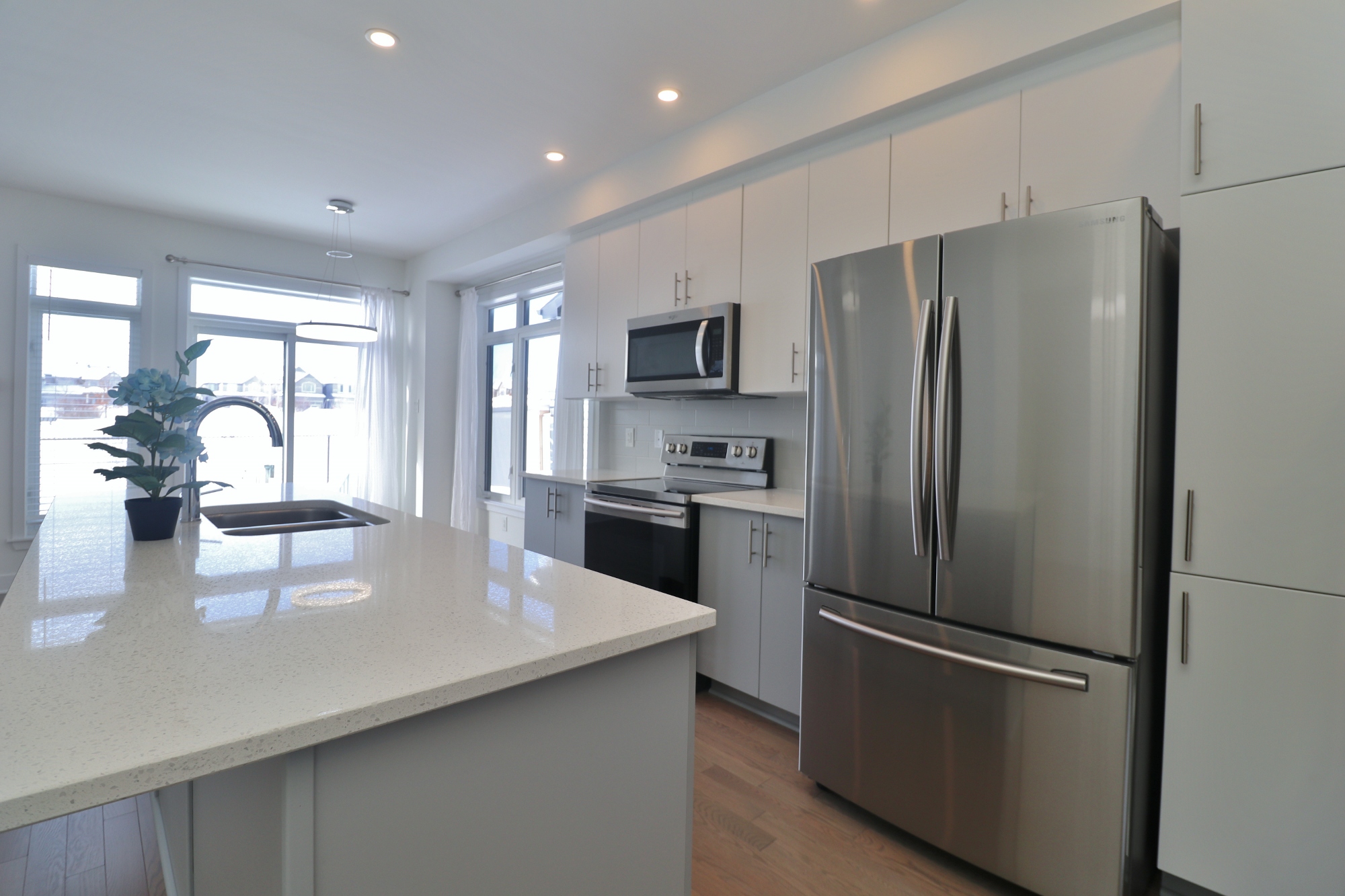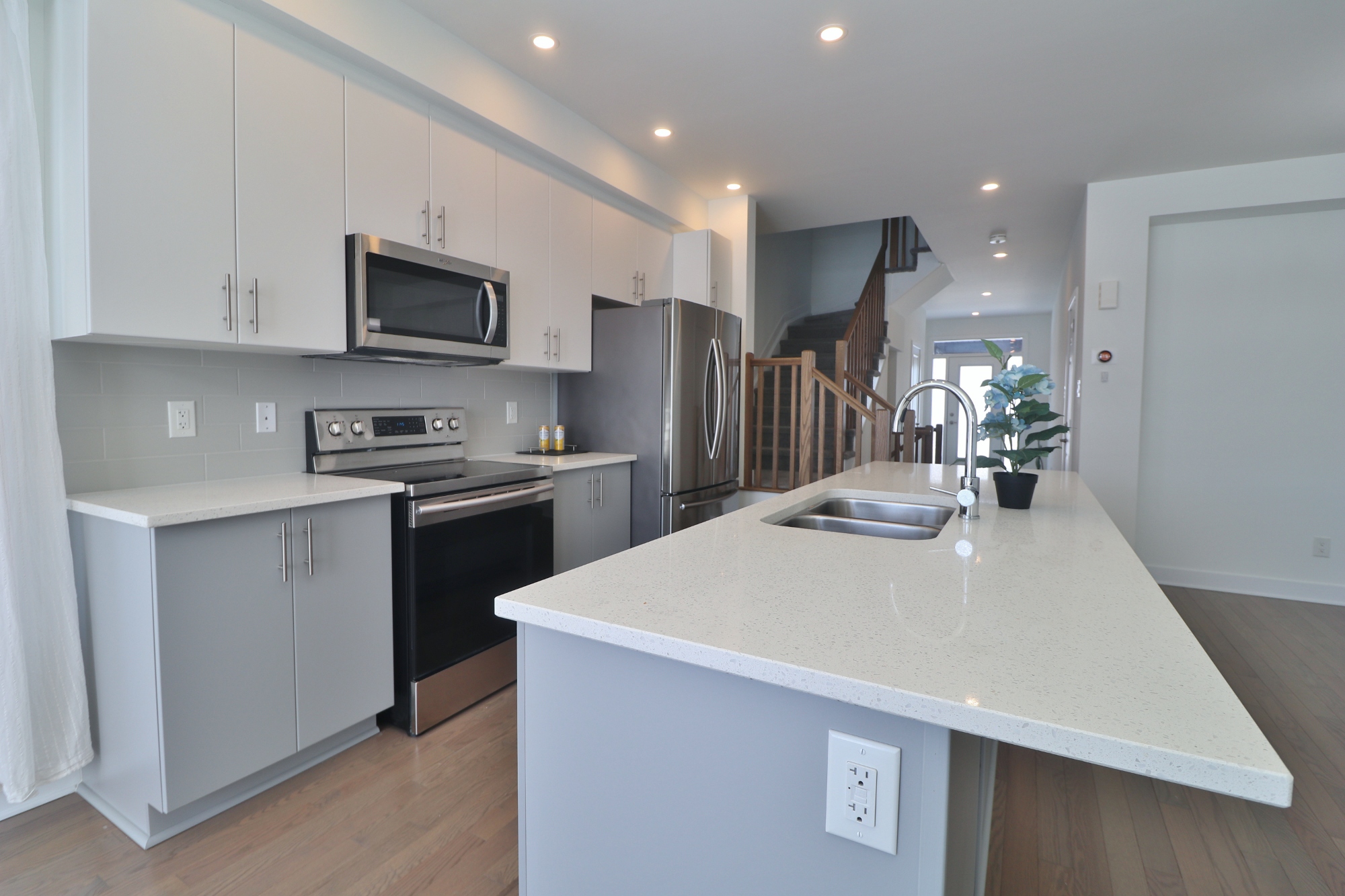 Welcome to this stunning 3 Bed/2.5Bath end-unit modern townhome located in the heart of the highly sought-after Findlay Creek/Leitrim, just steps from parks, schools, and everyday community amenities. Backing directly onto a park with no rear neighbours, this home offers rare privacy and a peaceful setting. The main level features a bright, open-concept layout with 9-foot ceilings, upgraded two-tone kitchen with quartz countertops, and stylish hardwood and tile flooring, perfect for both relaxing and entertaining. Thoughtful upgrades and modern finishes throughout give the home a clean, contemporary feel. Upstairs, you’ll find 3 generously sized bedrooms with large windows, including a spacious primary bedroom complete with a walk-in closet and private ensuite bathroom. The finished basement adds valuable living space with a cozy family room and large window, ideal for a home office, movie nights, or a kids’ play area. Laundry (washer and dryer included) is located on the basement level.